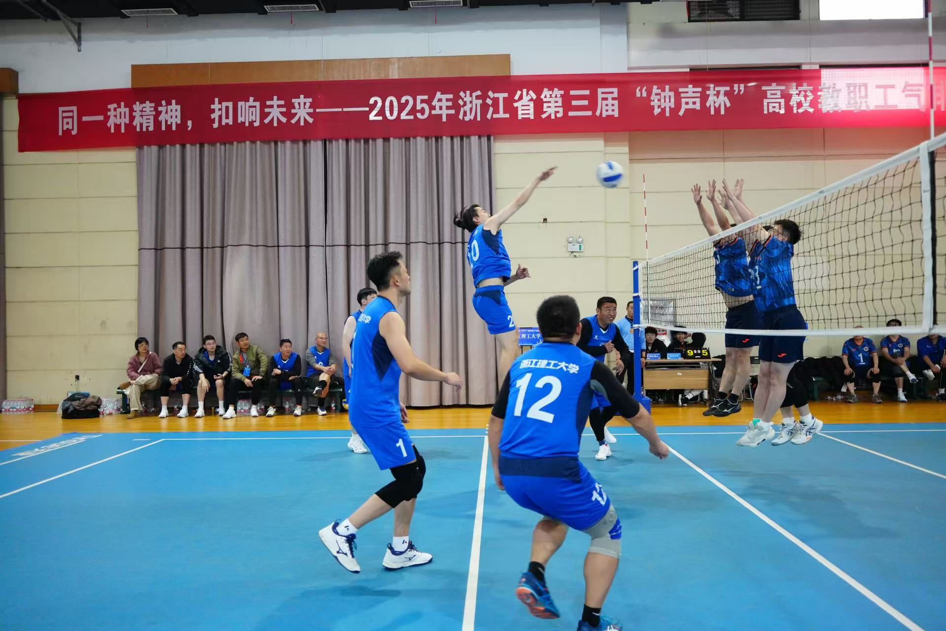 本次比赛,我校分别与嘉兴大学、温州医科大学和杭州职业技术大学等兄弟院校同场竞技。赛场扣人心弦、气氛热烈:场上,我校队员个个化身为“功夫飞人”,接球、传球、扣球一气呵成,大家充分运用强力扣杀、机智轻吊、顽强救球、以快制快等排球战术,与对手一较高下。