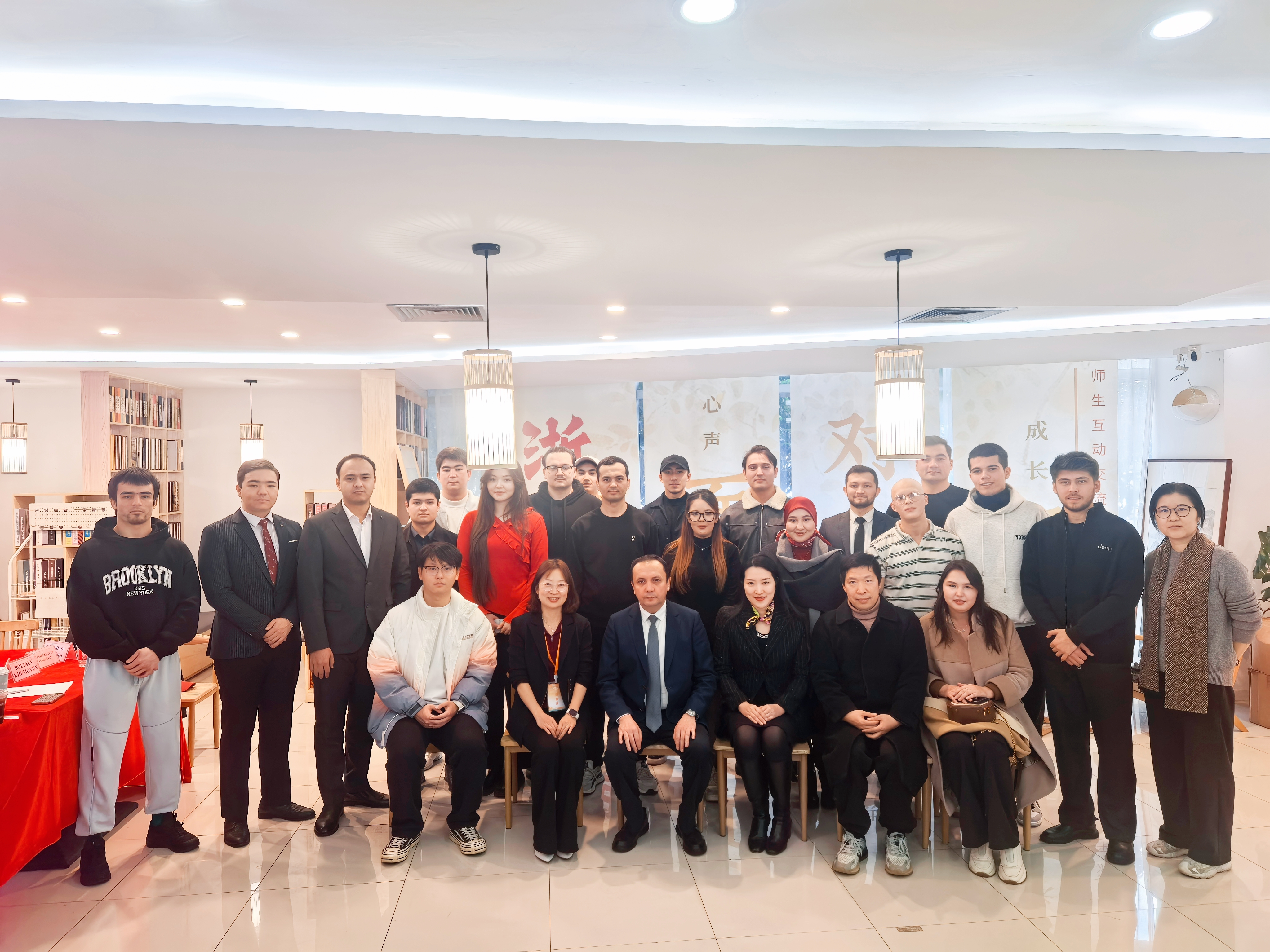 12月23日下午,乌兹别克斯坦共和国驻上海总领事馆副总领事Kutbiddin Ubaydullaev先生到访我校,与来自浙江大学、杭州电子科技大学、浙江传媒学院和我校的20余名师生亲切座谈。我校国际教育学院党总支书记吕媛媛、党总支副书记金仙女出席座谈会。