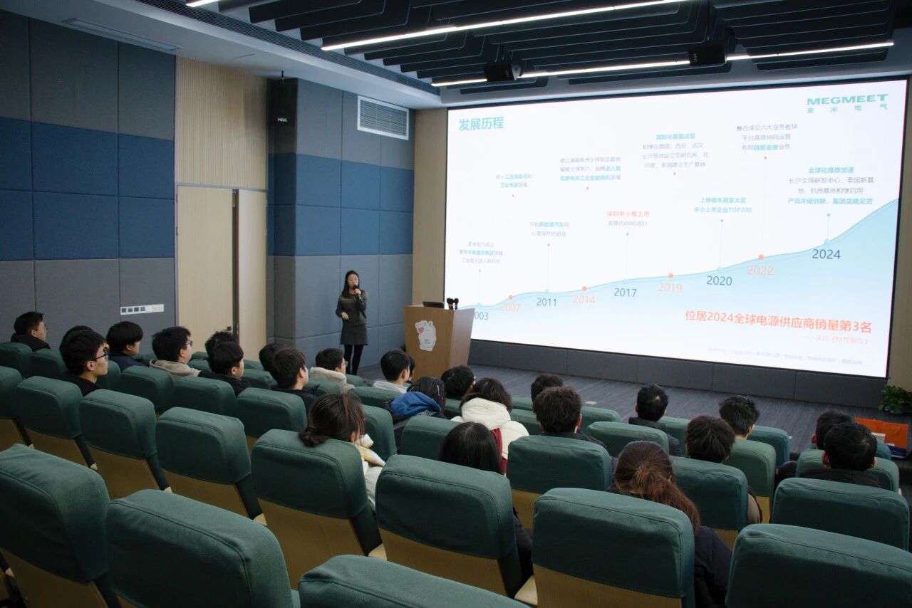 活动伊始,麦米电气杭州人力行政总监郑巧妹为师生们带来了详实生动的企业介绍。郑总监从企业发展历程、核心业务布局、技术研发实力、行业地位及未来战略规划等方面展开,重点分享了麦米电气在智能家电电控、智能装备、新能源交通等领域的创新成果与发展愿景。她特别强调,麦米电气始终秉持欢迎“肯干青年”的人才理念,高度认可脚踏实地、勇于担当、勤于钻研的青年特质,坚信实干型人才是企业高质量发展的核心动力。
