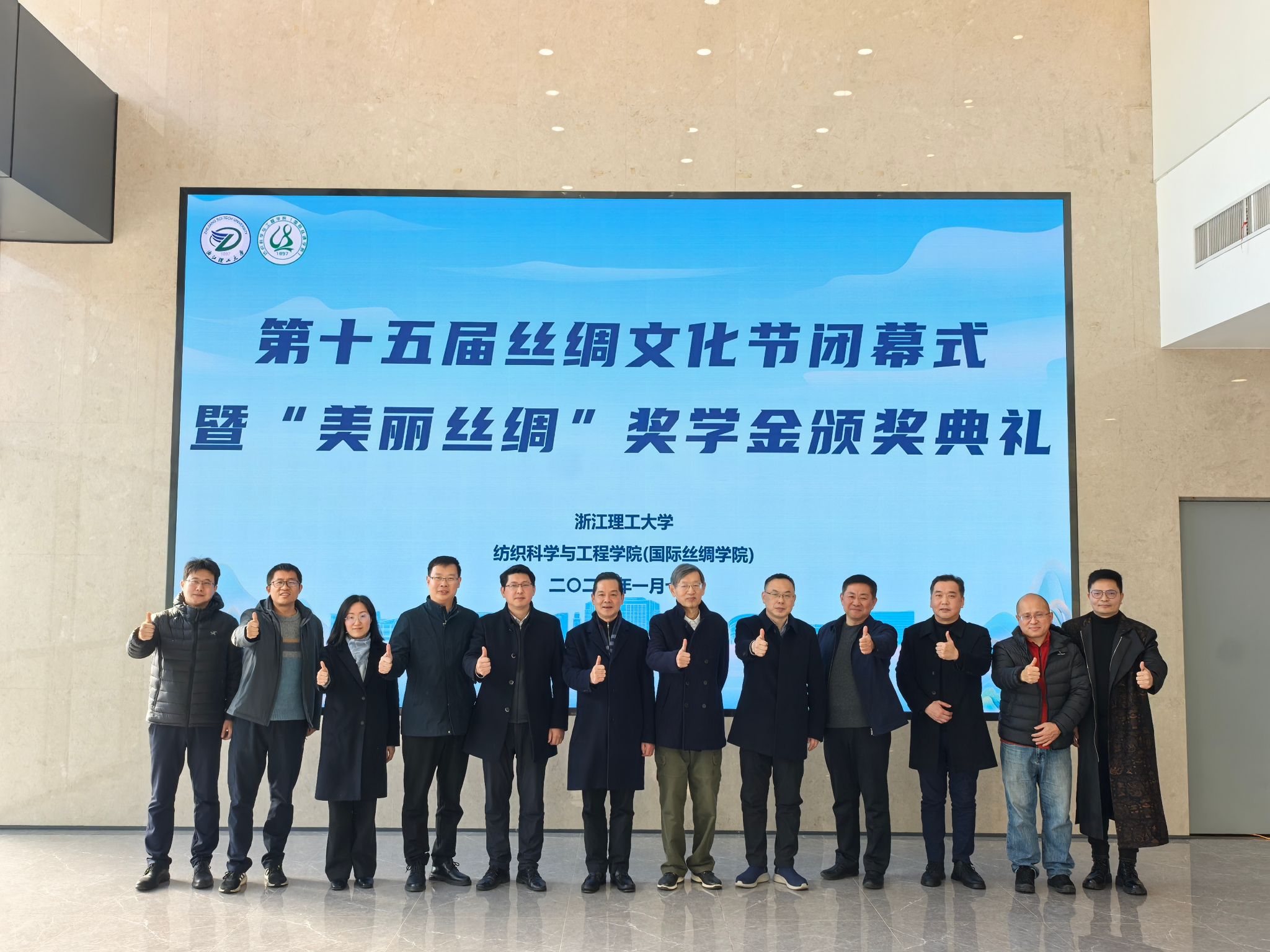 1月7日下午,纺织科学与工程学院(国际丝绸学院)第十五届丝绸文化节闭幕式暨“美丽丝绸”奖学金颁奖典礼在尚+大楼310报告厅举行。