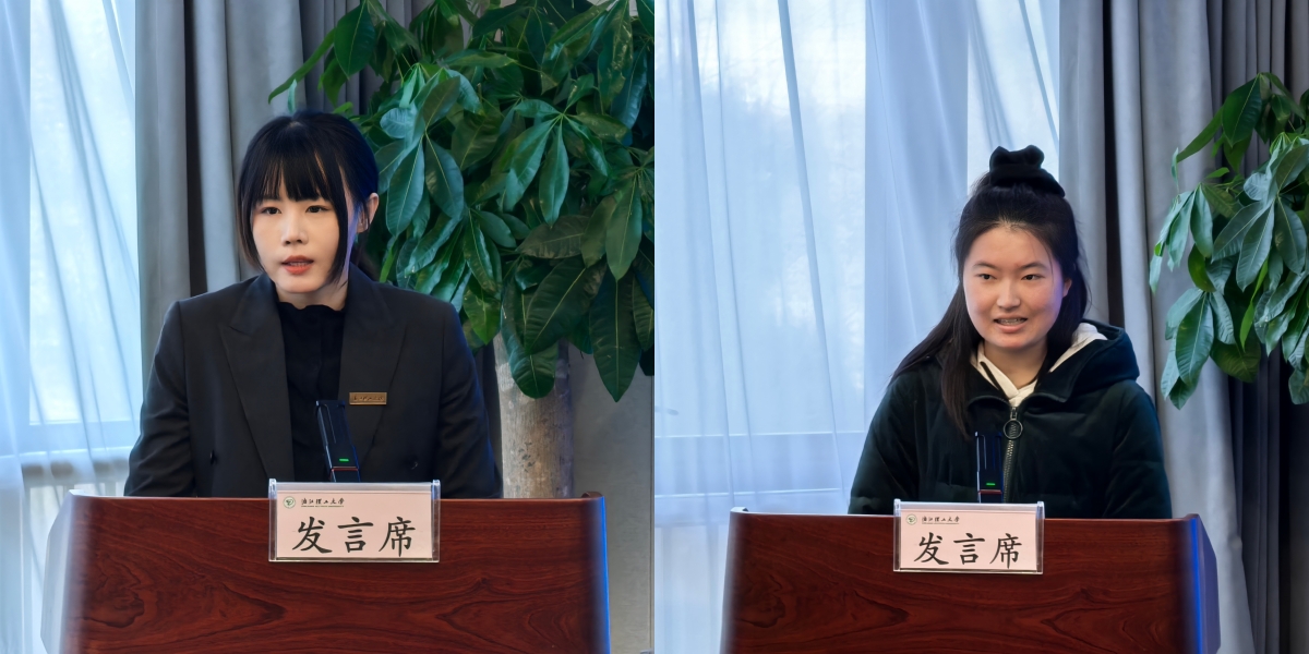 “丝绸发展之星”一等奖获得者张玉典、“丝绸专项”一等奖获得者钱佳盈分别作为获奖学生代表发言,分享了她们在专业学习、文化传承与创新实践中的成长感悟,展现了新时代丝绸学子的责任担当与青春风采。