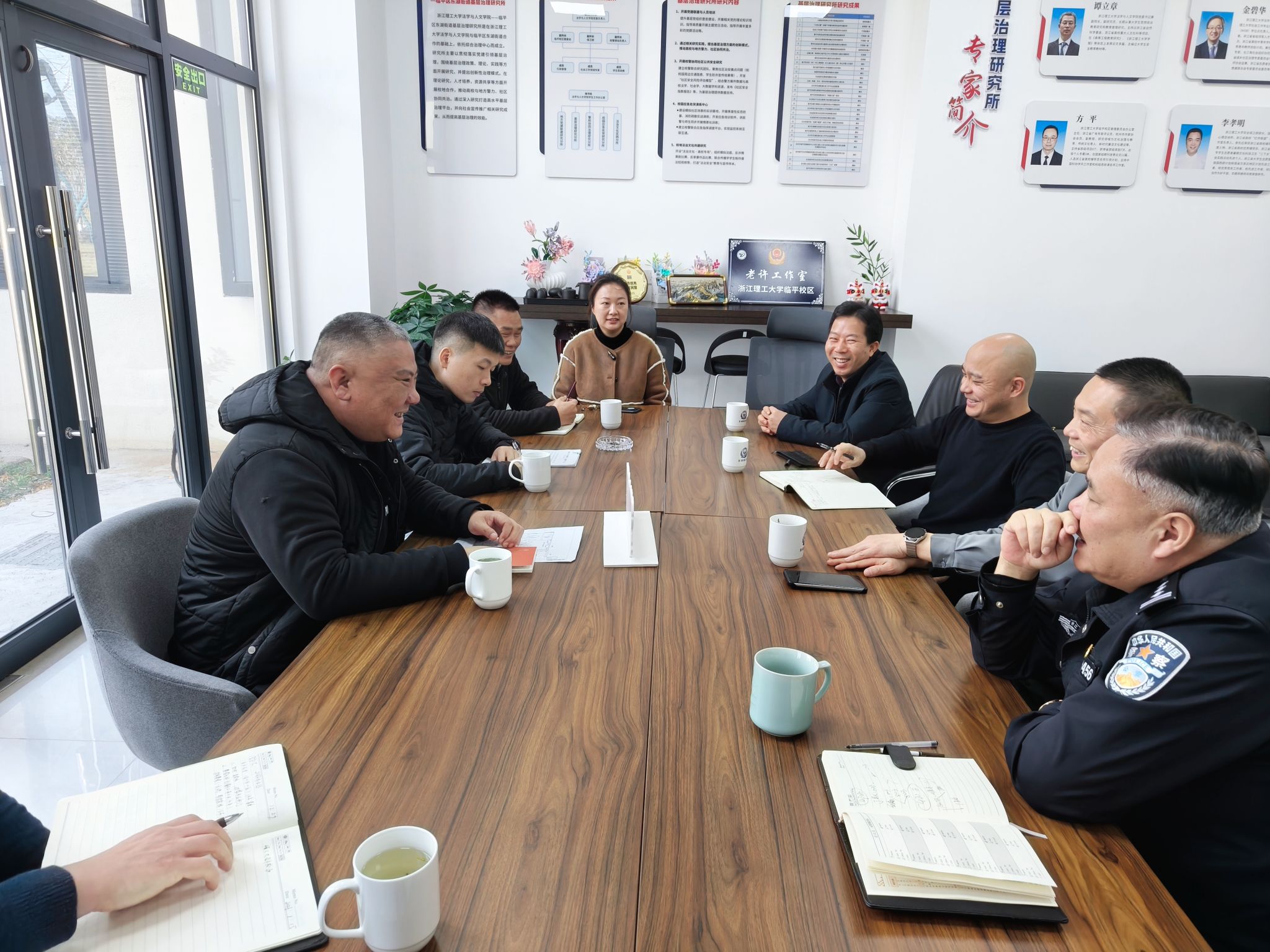1月15日,杭州市公安局政保支队王强一行赴浙江理工大学临平校区,调研校警驿站暨综治中心建设运行情况。临平区公安分局政保大队、东湖派出所、学校安保部负责人及驻校民警许海波陪同调研。