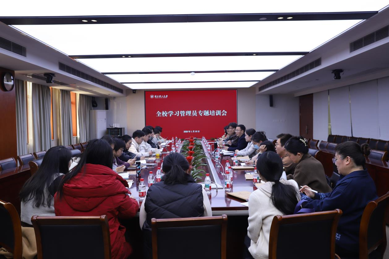 培训会上,党委宣传部(党委教师工作部)理论教育与教师思政工作科科长沈婷从理论学习的意义阐释、政策解读、职责定位、实务培训等四个方面作业务交流。她立足学校工作实际,系统解读了党委“第一议题”、理论学习中心组学习、重大决策前专题学习、巡听旁听、教师政治学习等系列制度规定,并针对当前学习管理中存在的薄弱环节,结合实践案例提供了解决思路,为学习管理员准确把握工作要求、提升业务能力提供了针对性指导。