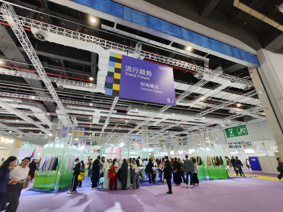 在流行趋势发布展区,师生们直面2026/2027最新发布的色彩体系、图案风格与创新材料。围绕产业前沿的设计风向,师生现场展开专业对话,从源头捕捉时尚产业的创新脉动,将抽象的趋势概念转化为可感知的视觉与触觉体验。