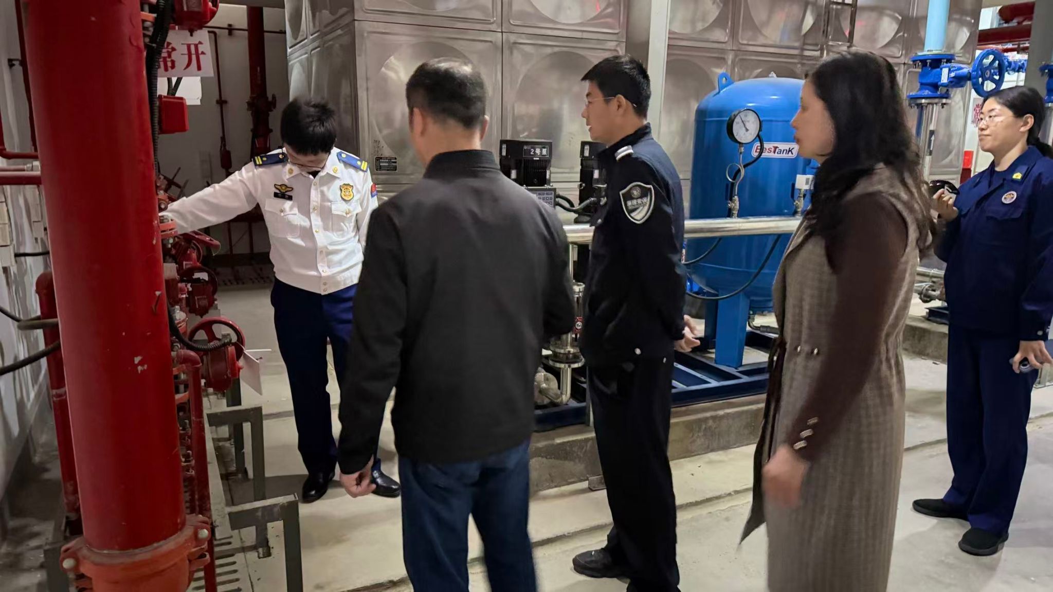 随后,检查组对校园消防控制室、水泵房等重点部位进行了全面“体检”。在25号楼地下水泵房,检查组现场测试了消防喷淋、一键启泵、报警通讯网络及消防广播联动等关键功能,并对消防末端进行压力测试。