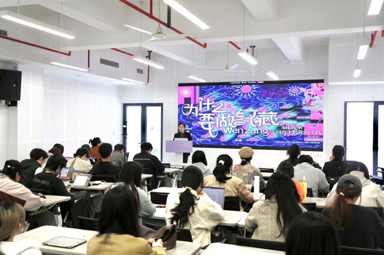 讲座还展示了纹藏数据库在时尚设计、文创开发及AIGC设计等领域的实践案例,引发了在场师生的浓厚兴趣。