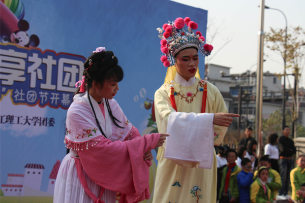 我校优秀社团首先进行了精彩的现场展演。GPS吉他社、粤UP粤语社、民乐协会、源头跆拳道协会、清韵戏曲协会、大学生手语志愿服务社、剑道社、篆刻艺术协会等社团分别展示了弹奏、歌曲、拳术、魔术、手工篆刻等多方面的精彩技艺,赢得了场下阵阵掌声。