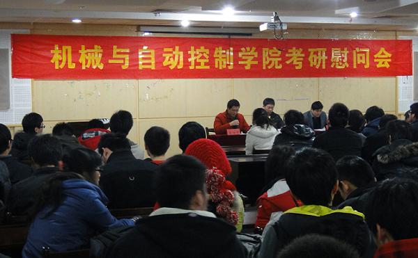 为鼓励考研学生积极考研,传授考研方法与技巧,增强学生的考研信心,12月15日下午,机械学院在学生活动中心412举行2008级考研学生慰问会。机械学院党委书记竺志超、副院长武传宇出席会议,2008级参加2012年研究生考试的170余名学生参加了会议。会议由学生工作办公室主任沈荣根主持。