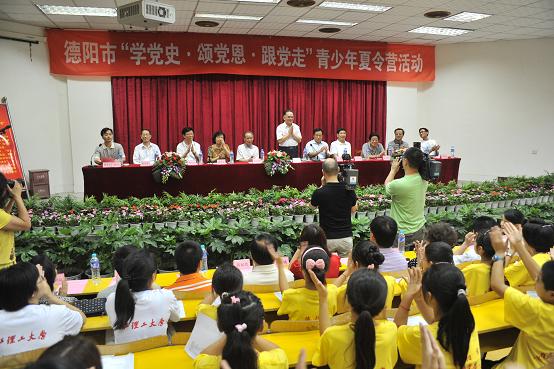 7月6日一早,志愿者们热情接待了来自德阳市8所小学、3所中学的120名夏令营营员。10点,夏令营举行开营仪式。四川省老领导、省关工委常务副主任李永寿、德阳市委副书记、市关工委主任张金明、市关工委执行主任郭务文等省市关工委领导,共青团市委、市精神文明建设委员会、市教育局、旌阳区相关部门领导出席了活动。开营仪式由市委副秘书长、团市委书记何升元主持。