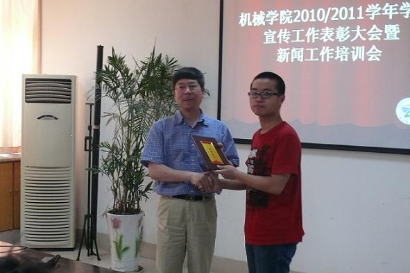 首先,学院党总支副书记仰滢宣读了《机械与自动控制学院2010/2011学年信息宣传工作先进集体及先进个人》的表彰文件,她强调希望受表彰的先进集体和个人再接再厉,在新的学年里取得更大的成绩,更大的荣誉。希望各位同学以先进为榜样,加强学习,振奋精神,积极进取,努力开创学院信息宣传工作的新局面,为学院的建设和发展再作新的贡献。学院党总支书记竺志超、副书记仰滢分别为宣传工作先进集体——学院社团联合会、王珂江等10名优秀通讯员颁发了荣誉证书。