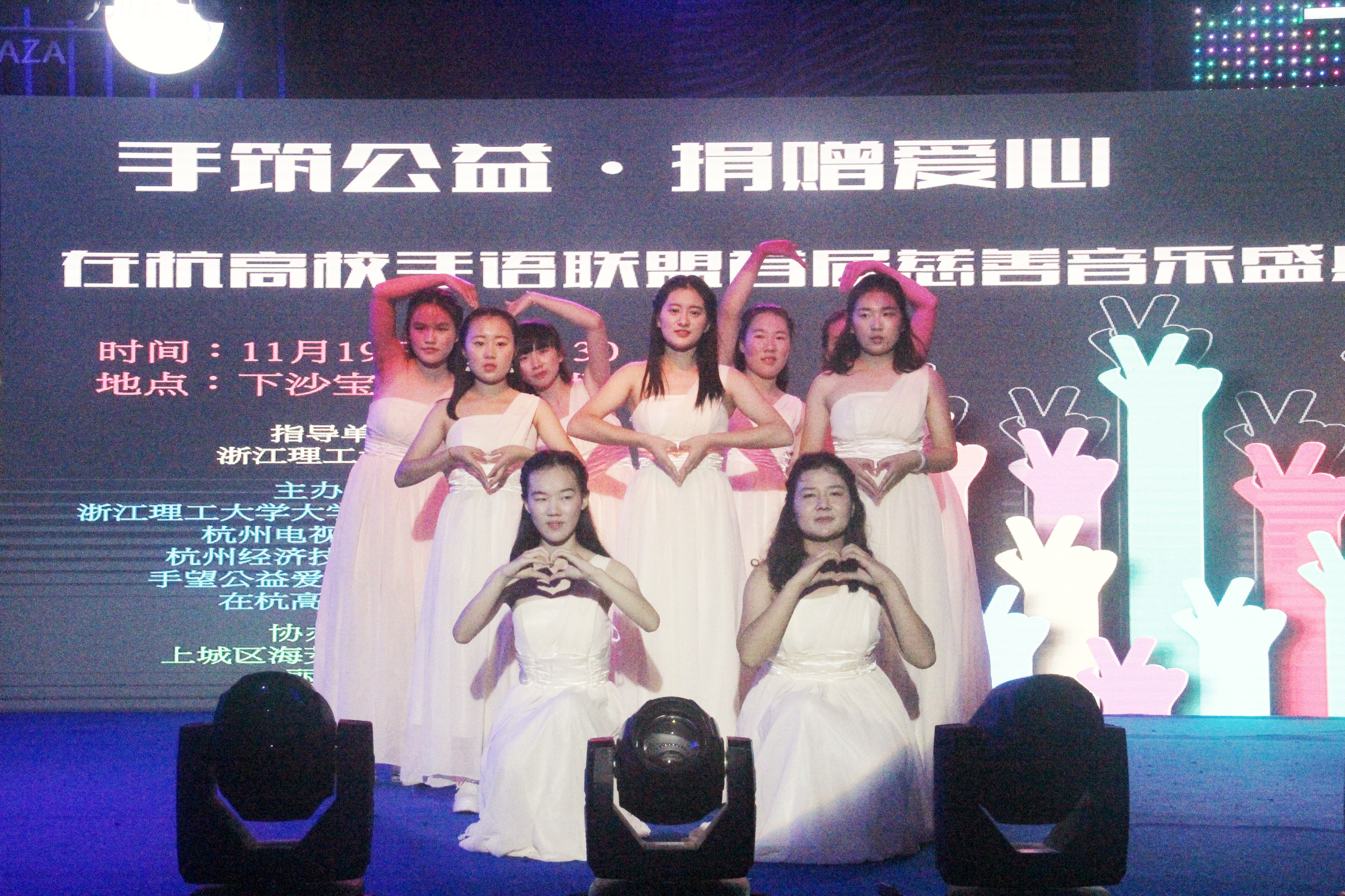 近日,“手筑公益·捐赠爱心”在杭高校手语联盟首届慈善音乐盛典在下沙举行。在杭8所高校11个社团的大学生上台表演,众多社会人士参与了募捐活动。