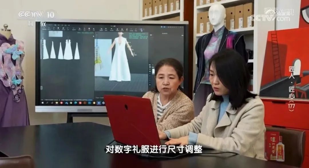 在中央电视台科教频道CCTV-10的《探索·发现》栏目中,从事时尚数字化推广研究的蔡建梅教师团队和沈海娜教师团队备受瞩目。节目中,数字服装师沈海娜,将真实服装进行数字化转化,完整呈现了数字动态服装;蔡建梅团队做了整个系列全部产品的数字化展示方案,并将选中的中国丝绸博物馆数字藏品龙纹服装进行全面数字化展示。她们通过运用先进的数字化技术,将传统服装设计与现代科技完美融合,打破了传统设计的局限,为服装行业注入了新的活力。