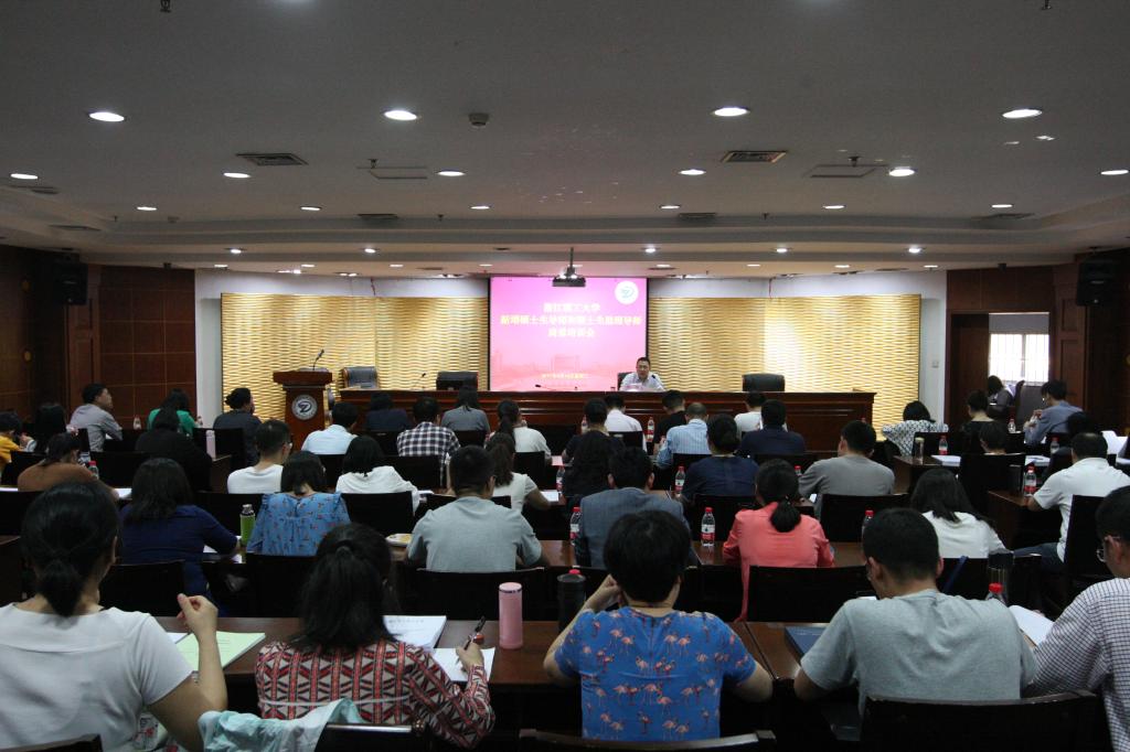 为加强研究生导师队伍建设,进一步提高研究生培养质量,5月10日下午,我校2016年新增硕士生导师和2017年新选聘硕士生助理导师岗前培训班第一次学习活动在行政楼一楼报告厅举行。新增硕士生导师和新选聘硕士生助理导师、有关学院研究生秘书和辅导员参加了此次学习活动。会议由研究生院常务副院长熊杰主持。