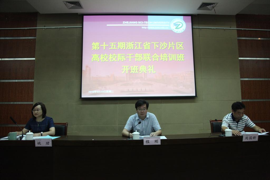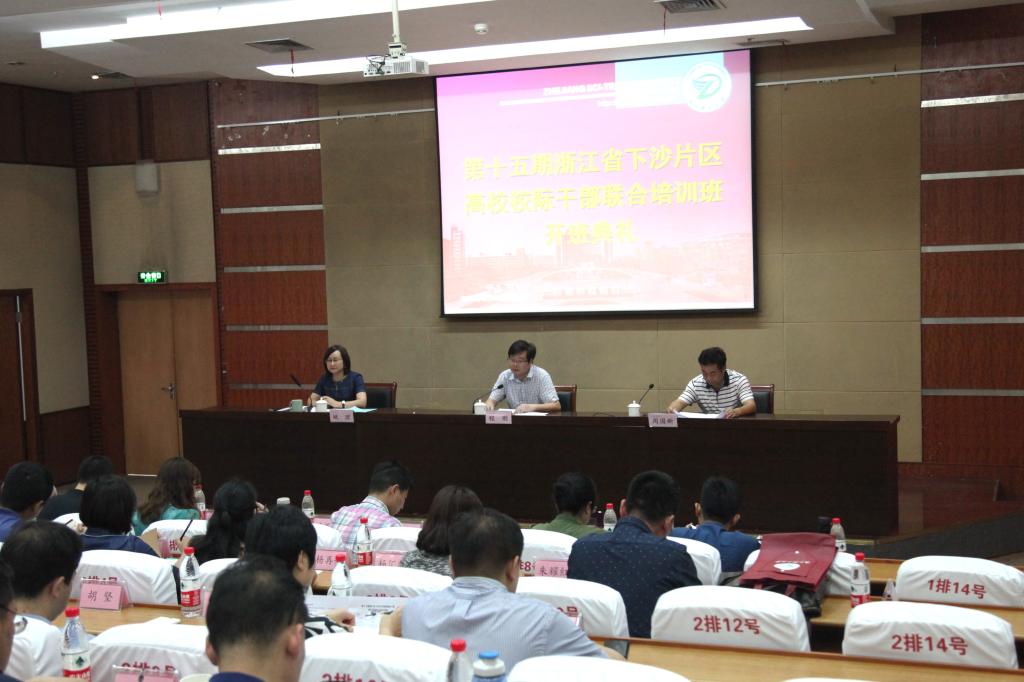 5月23日,由我校和浙江警官职业学院联合承办的第十五期浙江省下沙片区高校校际干部联合培训班在我校行政楼二楼报告厅开班。校党委副书记程刚,浙江警官职业学院党委委员、政治部主任周国新出席开班典礼。下沙高教园区14所高校、湖州师范学院和丽水学院的74位信息化建设和后勤保障部门的中层干部参加。开班典礼由党委组织部、党委统战部部长姚珺主持。