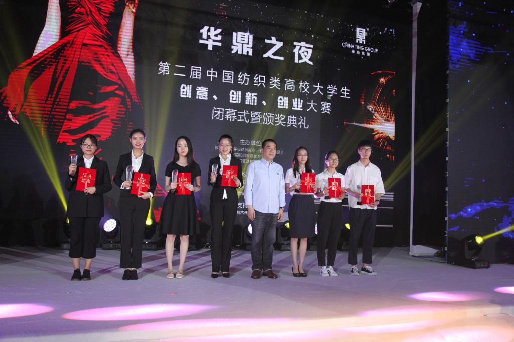 6月9日晚,由教育部高等学校纺织类专业教学指导委员会、中国纺织服装教育学会、上海管理教育学会主办,由我校联合杭州市余杭区政府和浙江华鼎集团共同承办的第二届全国纺织类高校创意创新创业大赛闭幕式暨颁奖典礼在华鼎集团举行。