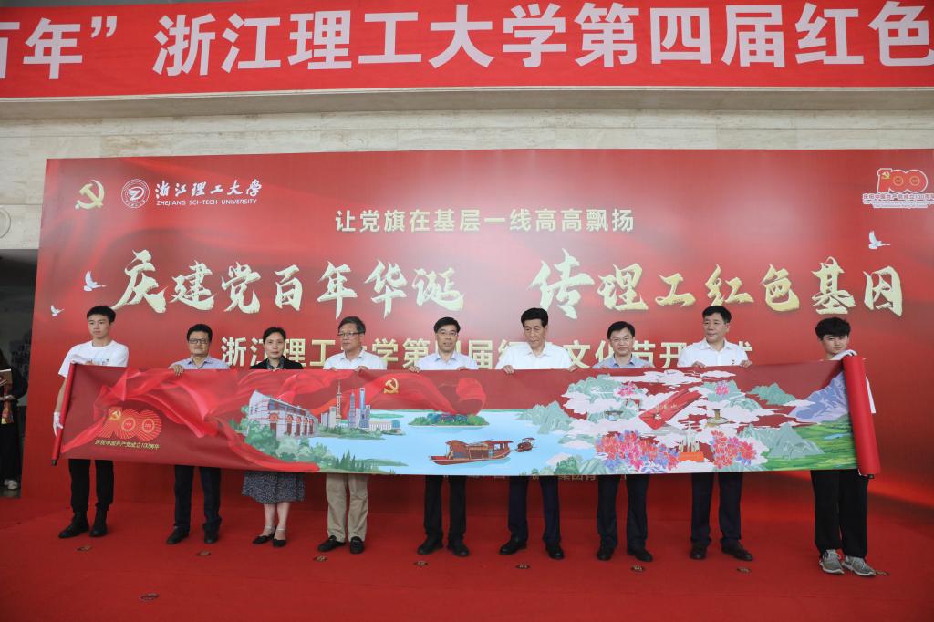 5月26日下午,浙江理工大学第四届红色文化节开幕式暨中国共产党成立100周年服饰映像展开展仪式在丝绸博物馆举行。第二巡回指导组组长叶宏、副组长陈刚,校党委书记吴锋民、副校长陈文华、王剑俊、许慧霞,四季青服装集团董事长祝浩泉、总裁兼党委书记祝慧良,第二巡回指导组成员、机关职能部门负责人、各二级单位党组织书记、四季青服装集团代表、师生党员代表等参加开幕式。开幕式由校党委副书记陶伟华主持。