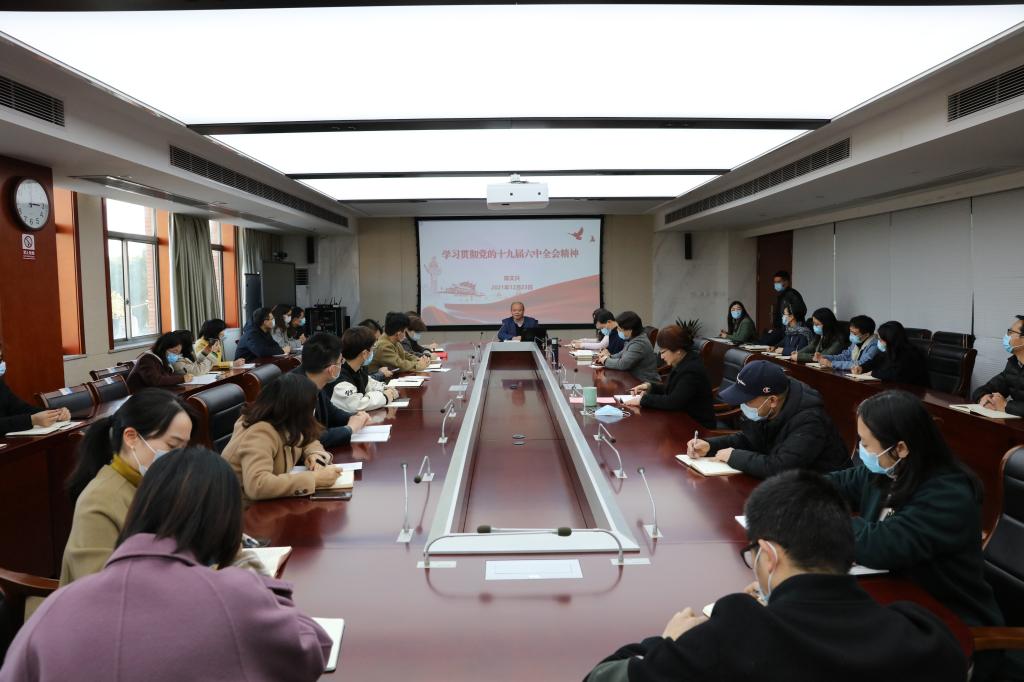 12月23日下午,浙江理工大学校长陈文兴在行政楼215会议室作党的十九届六中全会精神宣讲。宣讲会由校党委副书记姚珺主持。