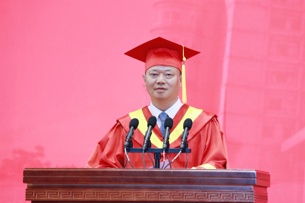 中国工程院院士、校学位评定委员会主席、校长陈文兴为毕业生致辞。他首先代表学校向全体研究生表示热烈祝贺,并向辛勤培育同学们的家人与老师致以诚挚的感谢与敬意。同时,他向全体毕业研究生提出了三点希望。一是勇立潮头、志存高远,凝聚不负时代、不负韶华的无我精神。将个人的理想追求融入国家发展大局,以蓬勃的青年力量创造新的业绩,以坚定的理想信仰书写新的篇章,以实际行动展现浙理学子的使命担当和家国情怀,让人生在担当大任的青春奉献中升华。二是勇于创新、潜心向学,凝聚敢想敢为、敢为人先的无畏精神。以前辈为楷模,始终把终身学习作为人生的必修课,努力开拓视野,提升认知深度广度,在发现问题、解决问题中形成真知灼见,实现更多从0到1、从无到有的突破。三是勇担使命、锤炼品德,凝聚知行合一、止于至善的无私精神。慎独慎微、勤于自省,坚持知行合一,把修身立德和人生实践紧密结合起来,常读有字之书、无字之书、心灵之书,以实际行动实现人生理想和价值。