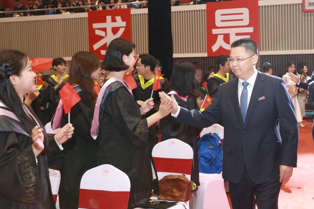 他向全体毕业生提出了三点希望。一是心怀山海、眼有星辰。作为新时代青年,要胸怀“国之大者”,在服务社会、奉献国家的奋斗历程中,实现自己的人生价值,奋力书写为中国式现代化挺膺担当的青春篇章。二是敢闯敢试、一往无前。希望同学们不卑不亢、无畏无惧,拥有风雨无阻的勇气、逢山开路的担当、开拓进取的智慧,用实际行动续写浙理人的奋斗华章。三是拥抱变化、久久为功。要继承发扬“求知求实、创新创业”的优良传统,始终保持好奇心,不人云亦云、不坐井观天,要努力站上世界的屋脊见自己、见天地、见众生。