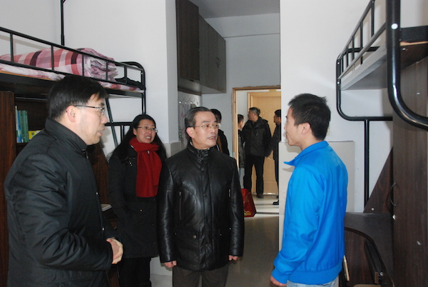 2月1日中午,在新春佳节即将来临之际,党委书记吴锋民、校长裘松良、党委副书记周文龙、副校长陈文兴等校领导来到教学区、学生生活区、保卫值班门岗等,走访看望寒假留校的本科生、研究生、留学生及安全保卫工作人员,向他们送去亲切的问候和新春的祝愿。党校办、学工部、研工部、留学生处、总务处、保卫处等部门负责人陪同走访。
