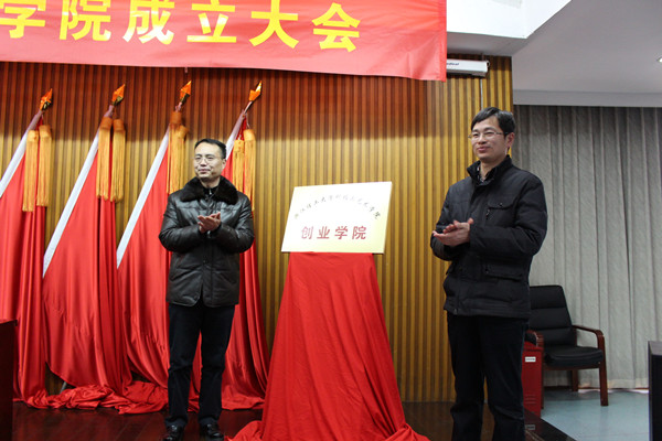 成立大会上,吴微微宣读了关于浙江理工大学科技与艺术学院成立创业学院的文件。院长汪亚明和院党委副书记、创业学院院长谭立章为创业学院揭牌。