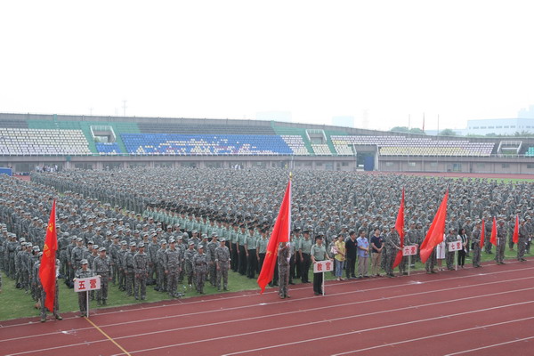 最后,在教官代表陈东阳、学员代表曹立言依次上台作承诺、表决心后,各营在教官的带领下来到各自的训练场地开始为期14天的军训。