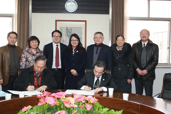 12月19日下午,我校与美国圣托马斯大学2+2联合培养本科生协议的签订仪式在行政楼312会议室举行。校长裘松良、美国圣托马斯大学首席副校长陈思齐分别代表各自学校签署了协议。圣托马斯大学中国事务联络官郭振荣、我校国际交流与合作处处长王晓军、副处长傅翔、教务处处长徐定华、外国语学院院长蒙兴灿、理学院副院长徐芬、张晓波参加了签字仪式。