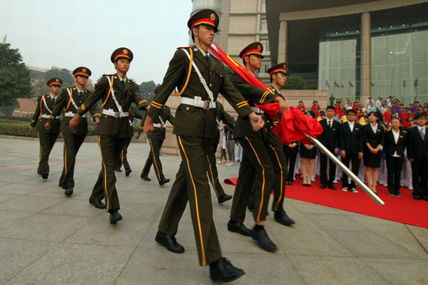 出席升旗仪式的有校党委书记徐志平,校长裘松良,党委副书记金瑾如、程刚,副校长陈建勇、杜时贵、沈满洪,党委委员、纪委书记李菲,副校长陈文兴,党委委员、校长助理、党委办公室和校长办公室主任陆爱华,党委委员、组织部部长周文龙,党委委员、宣传部部长杜兰晓,以及相关部门和各学院学生工作负责人。仪式由程刚主持。