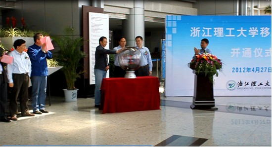 随后,杜时贵宣布浙江理工大学移动图书馆正式开通。我校是在清华大学、北京大学、复旦大学等高校之后全国首批开通移动图书馆的地方院校之一,也是浙江省第一家正式开通移动图书馆的大学。这标志着我校图书馆服务迈上了一个新台阶,将为学校教学科研工作提供强有力的技术支撑,为广大师生提供更便利、更快捷、更人性化的服务。