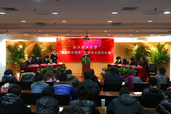 在全省上下学雷锋活动高潮迭起之际,2月29日上午,由浙江日报与我校联合举办的“我们的价值观”大讨论主题辩论赛在我校行政楼一楼报告厅举行。浙江理工大学校辩论队的同学就“帮助他人是不是帮助自己”辩题展开激烈辩论。浙江日报文化新闻部主任记者王婷、文化传播学院高长江教授以及党委宣传部、团委相关老师担任评委,校党委副书记程刚、校团委负责人观看了比赛。