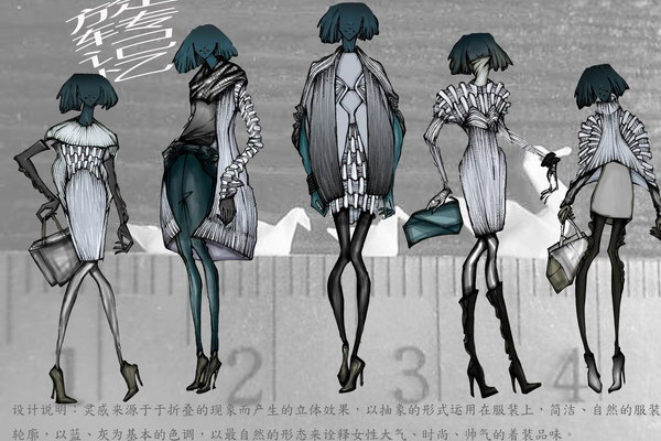此外,10月29日,在北京举行的2011“华孚杯”色纺时尚设计大赛决赛中,服装学院徐卷舒同学荣获优胜奖。作品《旋转记忆》的灵感来源于折叠的现象而产生的立体效果,以抽象的形式运用在服装上,简洁、自然的服装轮廓,以蓝、灰为基本的色调,以最自然的形态来诠释女性大气、时尚、帅气的着装品位。