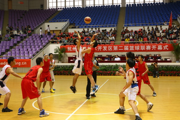 10月22日下午,由杭州经济技术开发区社会发展局主办,杭州经济技术开发区篮球协会承办,浙江理工大学、中国计量学院和杭州三谊大酒店协办的杭州经济技术开发区第二届篮球联赛开幕式在我校体育馆举行。