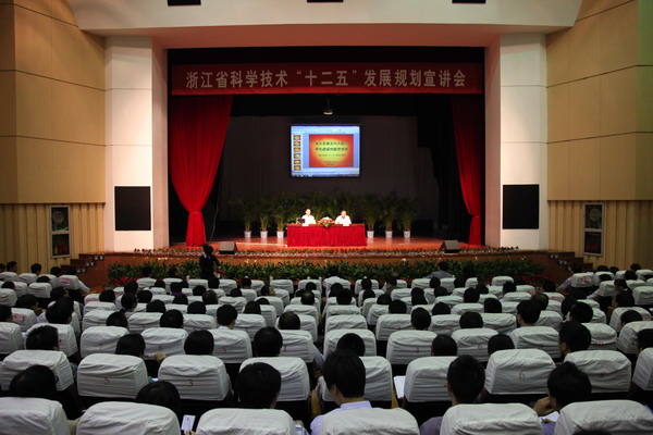 10月9日下午,浙江省科技厅厅长蒋泰维专程来到我校,在学生活动中心小剧场为师生宣讲《浙江省科学技术“十二五”发展规划》精神。报告会由校党委书记徐志平主持,全体在校党政领导班子成员、机关职能部门负责人、相关的科研和管理人员以及部分研究生等近600人参加了报告会。