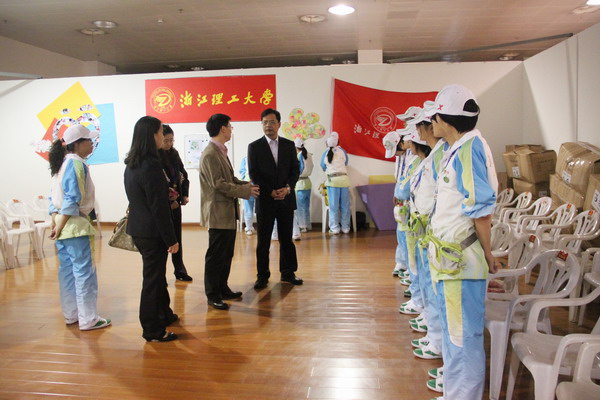 10月14日上午,副校长陈建勇在校团委负责人和网球竞委会领导的陪同下,看望了在黄龙体育中心网球场服务第八届残运会网球专项比赛的志愿者。