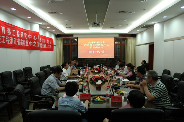 会议首先进行了教育部工程研究中心第一届技术委员会的聘任仪式,由陈文兴主持。裘松良致辞,表达了学校对“生态染整技术”教育部工程研究中心建设工作的重视和支持。技术委员会由来自相关院校、协会和企业的13位校外知名专家和5位本校本学科的教授组成。其中,学术委员会主任为中国工程院院士、东华大学周翔教授,副主任分别为中国印染行业协会李金宝理事长和苏州大学丝绸国家工程实验室陈国强主任。裘松良宣读了教育部工程研究中心第一届技术委员会委员名单,并为每位委员颁发了聘书。