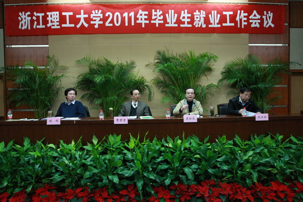 12月24日下午,浙江理工大学2011年毕业生就业工作会议在行政楼二楼报告厅举行。校就业工作协调委员会、校院就业工作领导小组成员、相关职能部门负责人、毕业班班主任、就业工作相关人员及部分毕业生代表参加了会议,校党委书记费君清、校长裘松良、副校长沈满洪出席会议。会议由校党委副书记程刚主持。