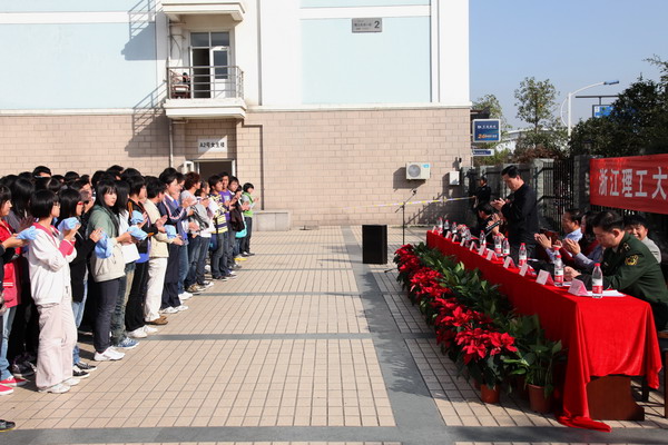 11月10日下午,围绕“全民关注消防,生命安全至上”的宣传主题,我校在学生生活一区举行了2010“119”火灾逃生与疏散演练。校党委委员、纪委书记李菲,下沙高教园区办公室主任方天禄,下沙经济技术开发区防火委副主任、公安分局副局长刘琦,经文保大队长沈江嵘,消防大队参谋郑波,白杨派出所副所长张思洋,校长助理、党委办公室、校长办公室主任陆爱华,有关职能部门负责人、部分学院学生工作负责人,义务消防队、消防安全志愿者服务队、宿管员、楼层长、生活一区2号西楼全体女生等共计800余人参加了本次演练活动。