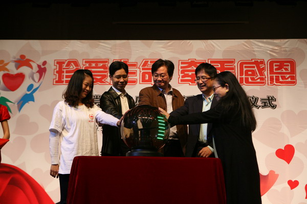 程刚、潘学东、吕杭军等为2008、2009年度感恩无偿献血活动中表现突出的高校、献血者个人及志愿者个人颁发了荣誉证书。我校荣获优秀组织奖。最后,在热烈的气氛中,由程刚、潘学东、吕杭军等一起将本次活动启动球点亮,启动仪式圆满落幕。