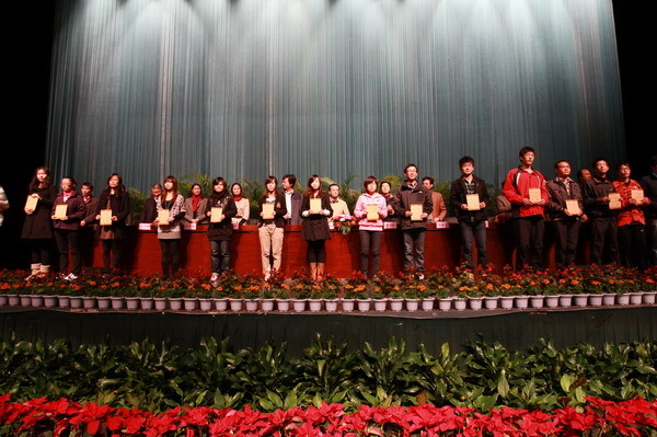 大会在庄严的《国歌》声中拉开帷幕。主席台有关领导分别宣读了2009/2010学年综合素质奖学金表彰文件,2009/2010学年纺织之光奖学金、桑麻奖学金、华鼎奖学金获奖名单,2009/2010学年优秀班主任、先进班级和学生先进个人名单,并现场为校综合素质奖学金、纺织之光奖学金、桑麻奖学金和华鼎奖学金获得者,优秀班主任、先进班级、校内优秀学生奖学金获奖代表等颁发了奖状。