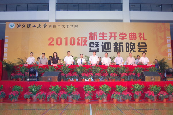 9月12日,科艺学院2010级新生开学典礼暨迎新晚会在西城校区体育馆隆重举行。校长裘松良,党委副书记程刚,副校长陈建勇、沈满洪,校有关职能部门负责人,学院党政班子成员,各部门、系(部)负责人出席典礼并在主席台就座。开学典礼由学院党委副书记主持。