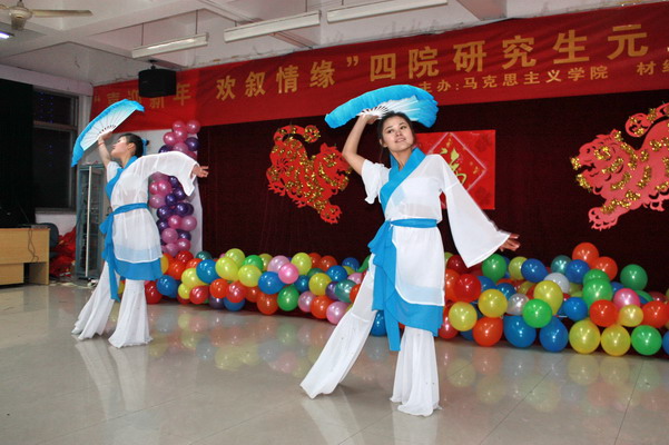 与本科生联欢活动相映成辉,我校研究生也组织了多场晚会。服装学院和经管学院分别举办了2010年研究生元旦晚会,马克思主义学院、材纺学院、机械学院和理学院则联合举办了研究生元旦联欢晚会。