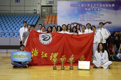 6月1日至3日,2018年浙江省大学生游泳锦标赛暨救生比赛在浙江财经大学游泳馆举行。我校代表队在甲组比赛中获团体总分第二名、女子团体总分第三名,男子团体总分第六名,2枚银牌,3枚铜牌,以及9个第四,9个第五,3个第六,4个第七,3个第八的好成绩。我校游泳队还被评为“体育道德风尚奖”运动队,徐国芳老师被评为“体育道德风尚奖”教练员,刘陈侑林、白楚钰同学获“最佳运动员”荣誉称号。