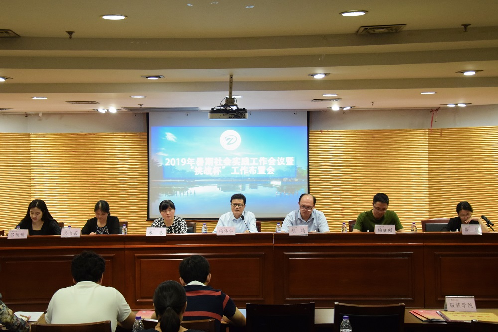 6月21日下午,我校2019年暑期社会实践工作会议暨“挑战杯”工作布置会在行政楼一楼报告厅召开。校党委副书记陶伟华,党委学工部、教务处、党委研工部、科学技术研究院、招生与就业指导处、团委等部门负责人出席会议。各学院分管副院长、学生工作负责人、分团委书记,以及部分社会实践重点小分队代表、“挑战杯”竞赛指导教师代表、参赛团队代表等到会参加。