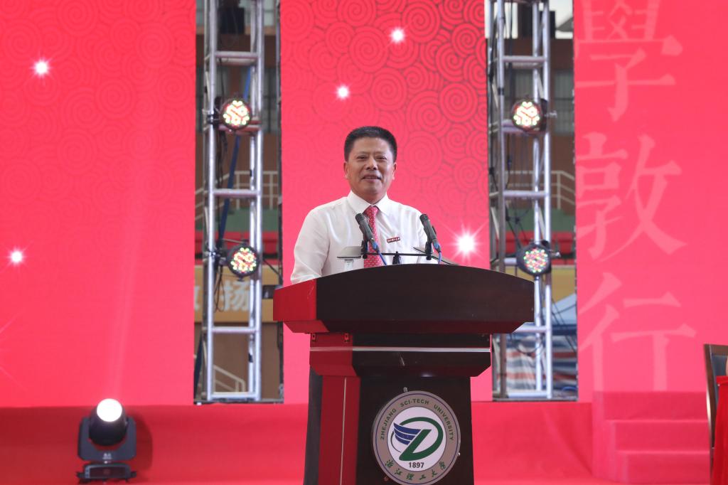 马克思主义学院院长渠长根教授代表全体教师欢迎新生加入浙理大家庭,并介绍了我校的沧桑历史变迁,他希望同学们不负期待,相濡以沫,以浙理人的身份把自己锻造成富知识、有理想、能担当、会干事的时代新人。