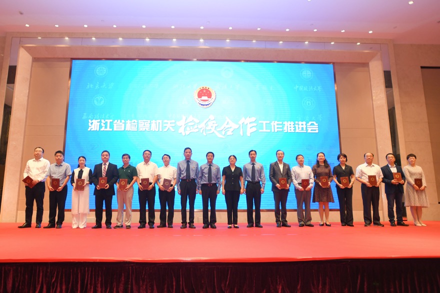 9月18日,由浙江省人民检察院主办的“浙江省检察机关检校合作工作推进会”在绍兴市会稽山阳明酒店举行。参加本次会议的领导有最高人民检察院政治部副主任胡尹庐,教育部高等教育司副司长徐青森,浙江省人民检察院党组书记、检察长贾宇,浙江省政法委政治部主任于万春,浙江省委政法委一级巡视员、省法学会党组成员陆剑锋,浙江省教育厅党委委员、副厅长于永明等。受邀参加会议的有我校及北京大学、中国人民大学、浙江大学、武汉大学等18所高校。副校长王剑俊代表学校出席会议,法政学院负责人及相关教师也参加了会议。