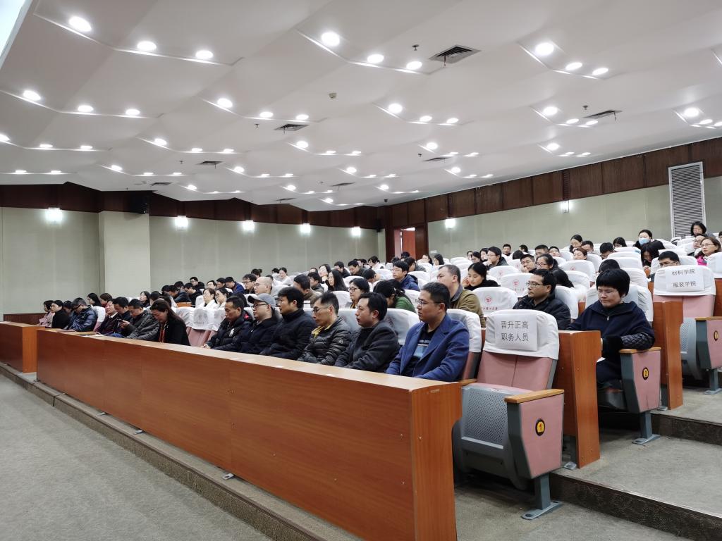 12月10日,我校2020年晋升高级专业技术职务人员集体谈话暨工作交流会在行政楼二楼报告厅举行。副校长郜正荣出席会议,人事处、教务处、科学技术研究院、教师发展中心和各学院(部)的相关人员150余人参加会议,会议由人事处相关负责人主持。