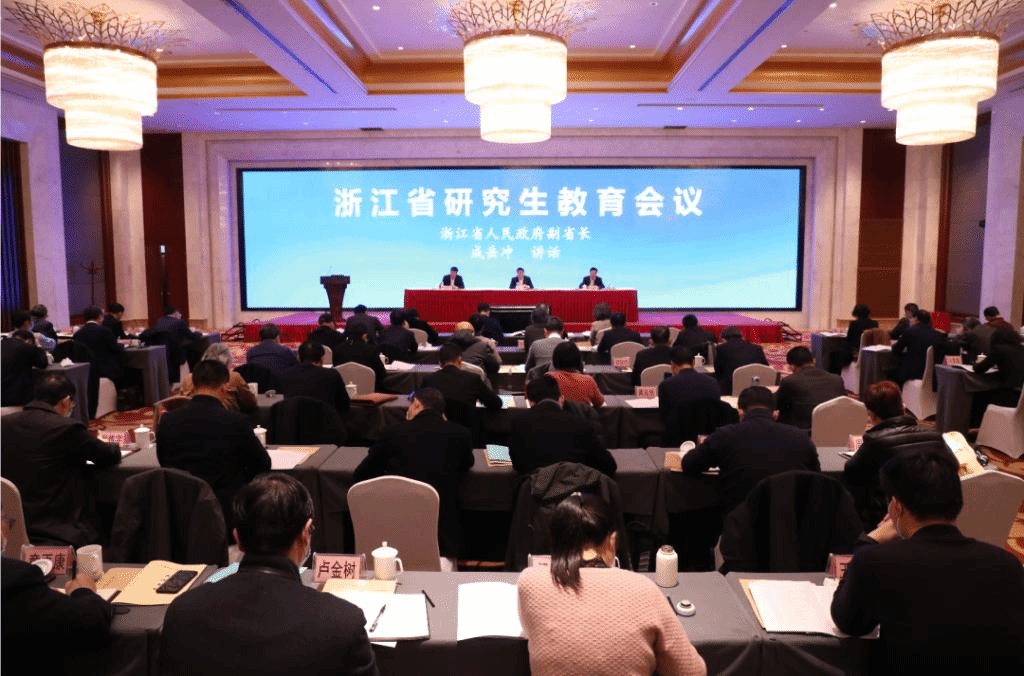 12月29日下午,浙江省研究生教育会议在杭州召开。副省长成岳冲、省政府副秘书长蔡晓春、省教育厅领导班子成员等出席会议。校长陈文兴率领学校研究生院、学科建设处、重点大学建设办公室等部门负责人参加了会议。会上,副省长成岳冲传达了省委书记袁家军、省长郑栅洁的重要批示并讲话,会议由省教育厅党委书记、厅长陈根芳主持。