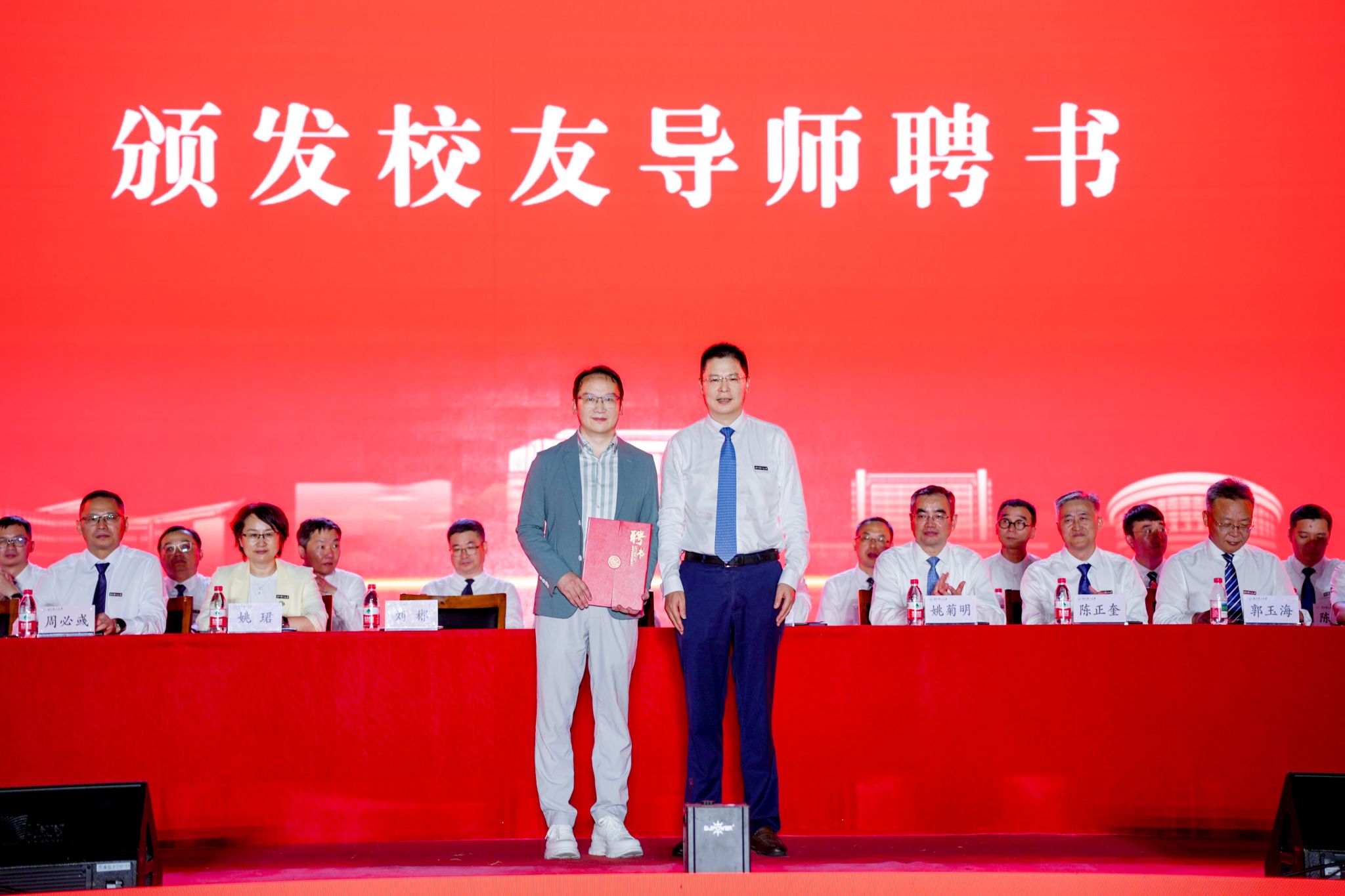 随后,赵全军书记为刘郴颁发校友导师聘书。