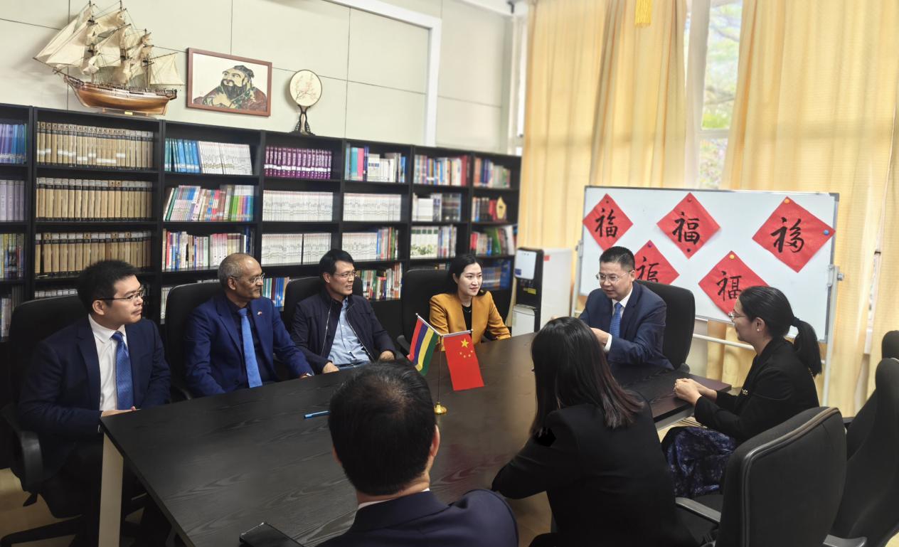 在毛里求斯期间,代表团一行拜会了我驻毛里求斯大使黄世芳。赵全军介绍了浙江理工大学办学情况及孔子学院建设进展,感谢大使馆长期以来的支持,并希望大使馆继续在孔子学院建设与发展规划中给予指导。黄世芳大使充分肯定了毛大孔院自成立以来取得的成绩。她希望学校依托学科特色优势,拓宽合作网络,积极传播丝绸文化,探索“丝路学院”等品牌建设,深化与当地教育、科技等各界的合作,助推中毛两国友好关系可持续发展。