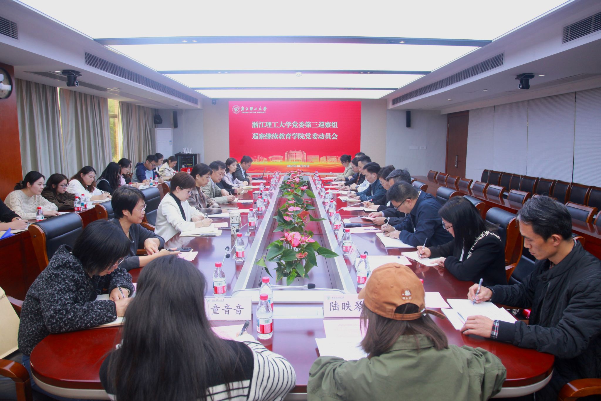 党委第三巡察组全体成员,巡察办公室、党委组织部、纪检监察室负责人,继续教育学院全体教职工、近五年调离或退出领导岗位的原班子成员等参加会议。会上,党委第三巡察组对学院党政领导班子及其成员进行了民主测评和意见征求。